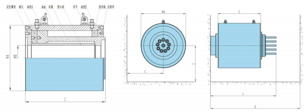 | 1 | YDC600/52-200 | 600 | 52 | 1.155 | 48 | Φ58 | Φ175 × 352 |