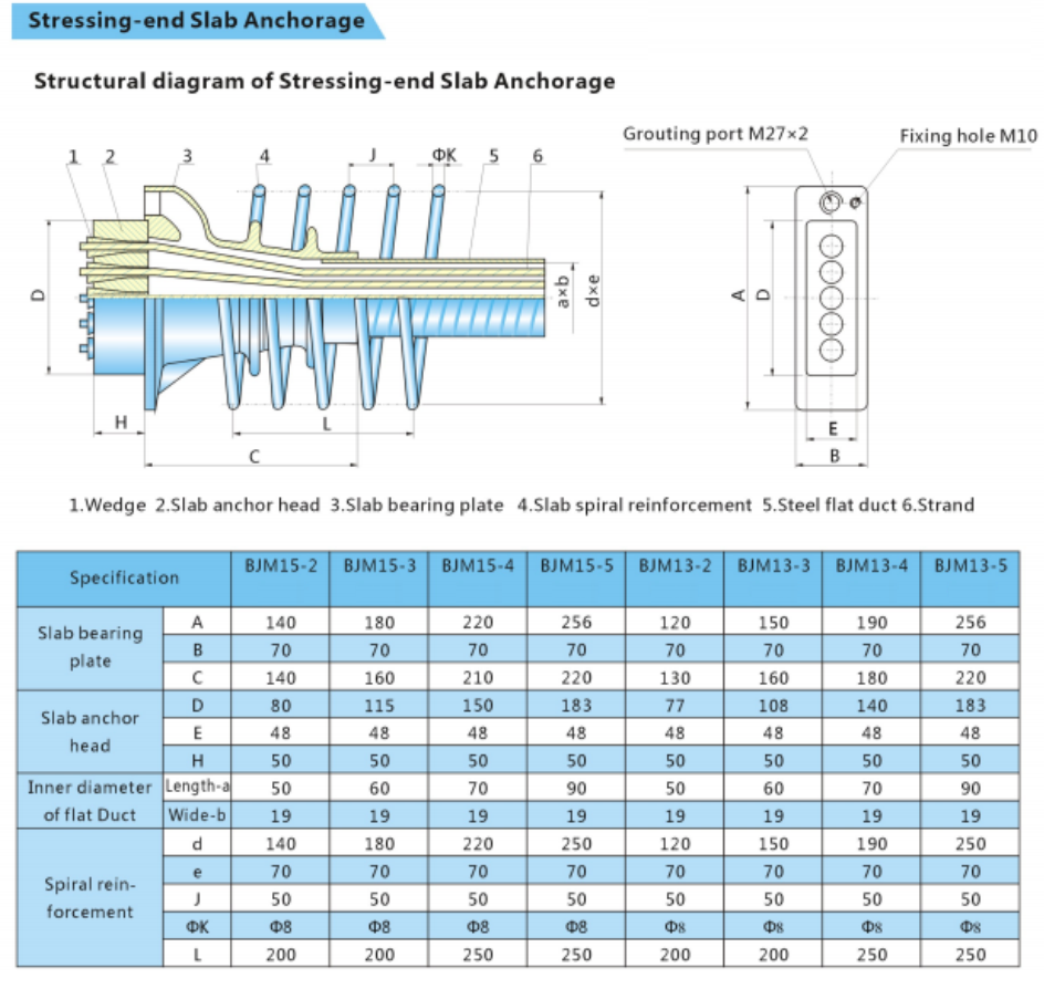 Trong thi công sàn bê tông dự ứng lực, hệ thống neo sàn đóng vai trò cực kỳ quan trọng trong việc truyền lực căng từ cáp vào kết cấu bê tông. Neo sàn (Slab Anchorage) cung cấp bởi Dongtaycorp được thiết kế dẹt, nhỏ gọn, phù hợp hoàn hảo cho các cấu kiện có chiều dày mỏng như sàn nhà cao tầng, mặt cầu hoặc bản quá độ.